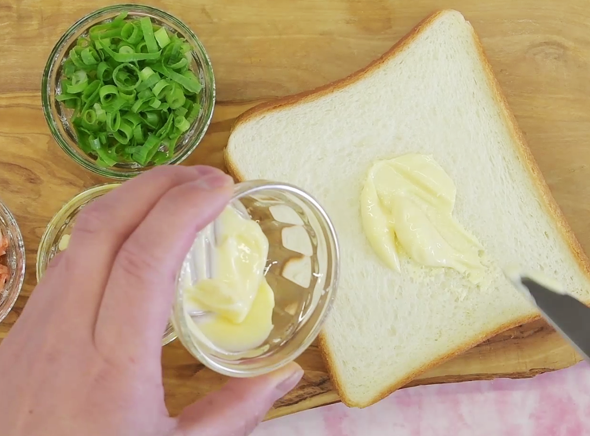 食パンにマヨネーズを塗る。